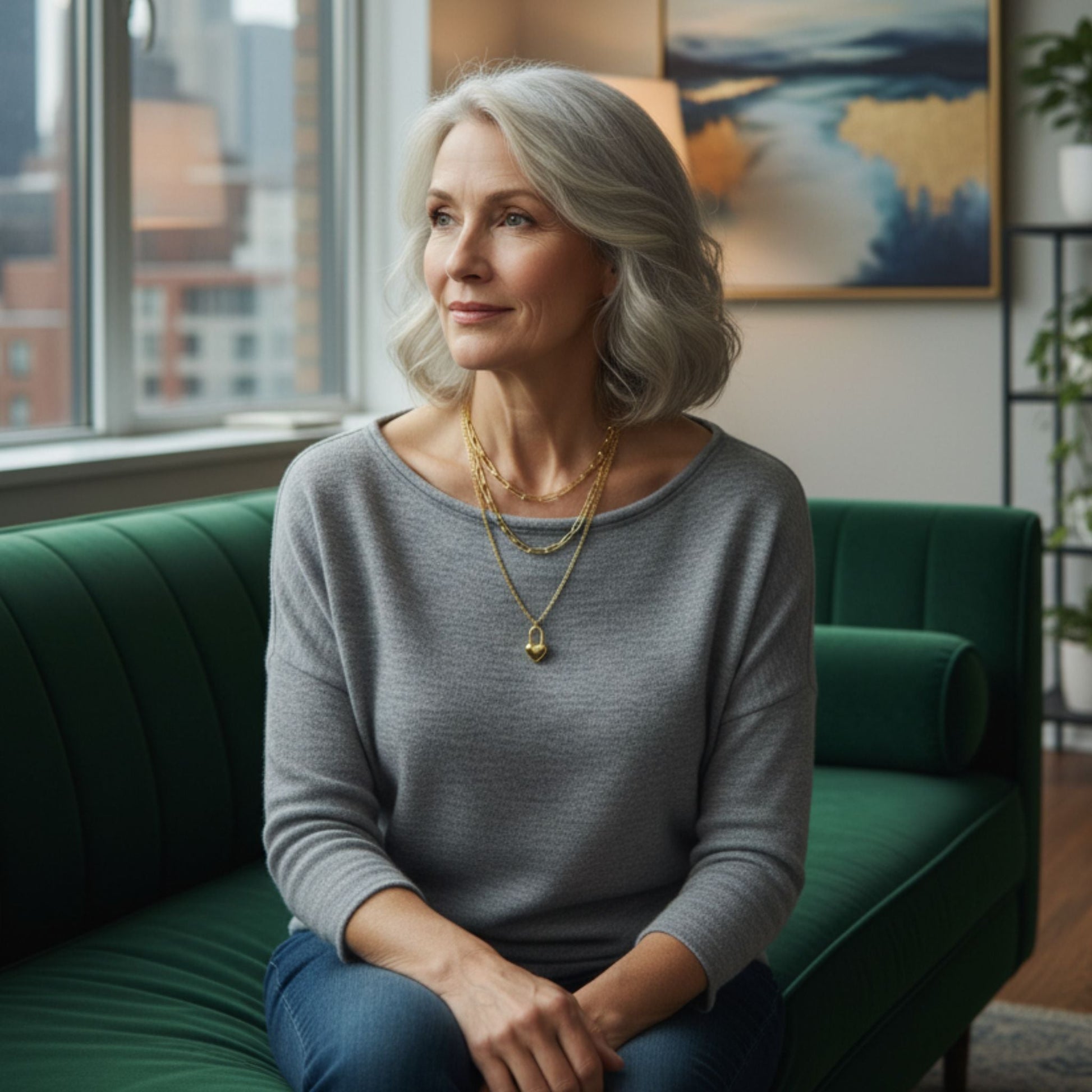 Customer Linda W wearing jewelry